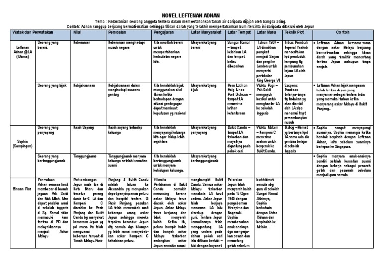 Tema Persoalan Bentuk Gaya Bahasa Nilai Pengajaran. Novel Leftenan Adnan Wira Bangsa K4. Senarai novel bahasa melayu tingkatan 1234 dan 5.